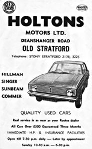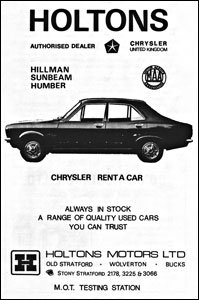 Holtons Motors Ltd., an associated company, was formed in 1965 and this brought a fleet of self-hire cars and large selection of guaranteed used vehicles. The firm is also an authorised dealer for Chrysler, and the two Holtons companies employ a combined staff of over 40 people.