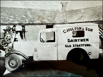 After an 11 months' business course at a dairy, Mr. Oxenham began work at Old Stratford. "It was then 90 gallons a day," he declared. "It is now 500 gallons a day, and we deliver to Old Stratford, Stony Stratford, Loughton, New Bradwell, Haversham and Old Wolverton."