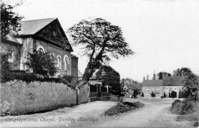 No summary available. Listed building The building was listed in 1988 with listing particulars as follows. GV II Nonconformist chapel. Built 1813, extended mid C19. Coursed squared limestone, slate roof. Single cell plan. 2-storey, 4-window range. 2 central bays break forward slightly and have 2-light casement windows to ground floor with segmental-arched heads. C20 doors to far left and right with plain pilastered wood surrounds and entablatures. Doors and windows above are set in shallow recesses with round-arched heads. 2-light casement windows to 1st floor with round-arched heads. Segmental and round-headed arches are of contrasting grey sandstone and all have key blocks. Pedimented gable with central keyed oculus. A rectangular railed enclosure projects to centre; cast-iron railings with spear finials and urn finials to standards. County fire insurance plaque to 1st floor centre. Plaque between 1st floor centre windows with hood mould inscribed Built 1718/Destroyed by Fire/March 1813/Rebuilt and Enlarged/By Public/Subscription 1813. Long recessed panel above 1st floor windows bearing inscription YARDLEY CHAPEL. 2-storey, 3-window red brick extension to right with side door. Fine interior with galleries to 3 sides. Galleries have panelled fronts. Central panel of gallery to entrance end breaks forward and bears clock face. The galleries are supported by slender cast-iron columns with simple Ionic-style capitals. Deep coved plaster ceiling. Later C19 pitch-pine pews and pulpit. First floor room of extension, formerly Sunday School can be opened out to gallery adjacent by shuttered partition to wall between, which is supported by pair of painted stone or cast-iron baseless Doric columns. Originally a Congregational Chapel founded 1672. (Buildings of England: Northanptonshirei 1973, p471) |