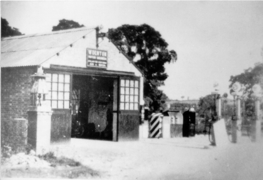 Mrs Wilfred Denton outside Yardley hastings Garage |
