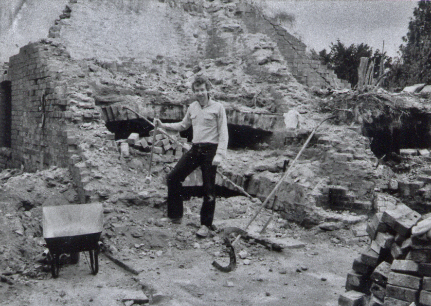 | oven part demolished top arch of oven visible with Andrew Knibbs the owner in foreground | |||||