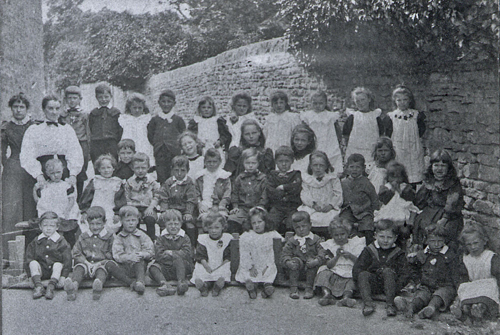 |   | very early school group photo pre 1890 with 2 staff members |   | |||