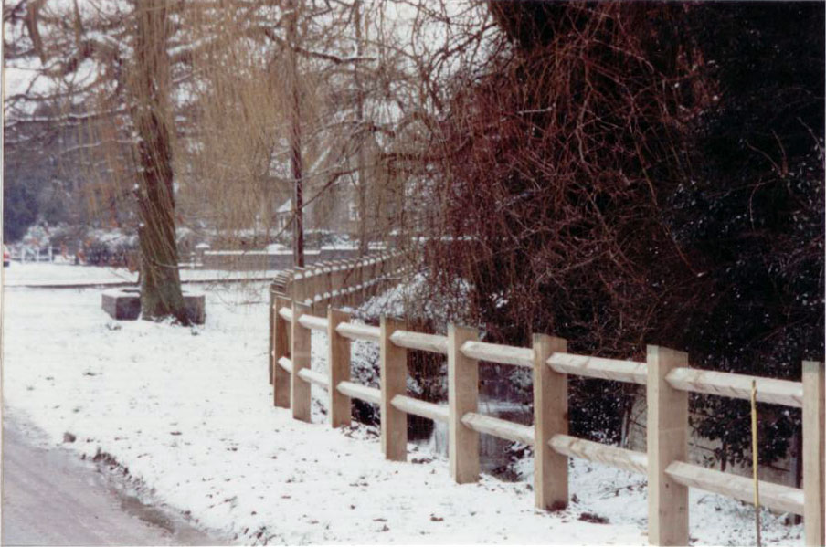 | Wood post and rail replaces concrete post and metal tubuler rail | |||