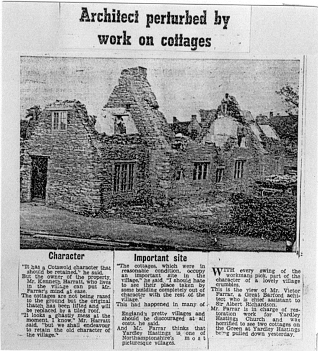 concern shown by Mr Kenneth Harratt and defended by Mr Farrar the architect in charge who stated the cottage is not being demolished