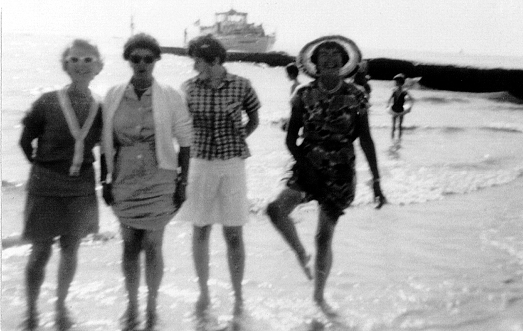 | Four local girls paddling on the beach circa late 1920s | |||||
