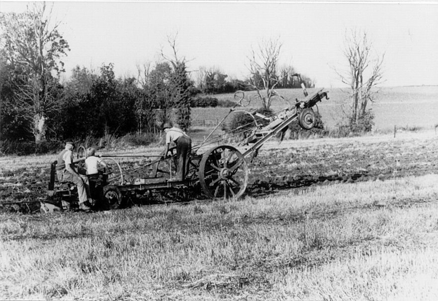 steam ploughing on a village farm |