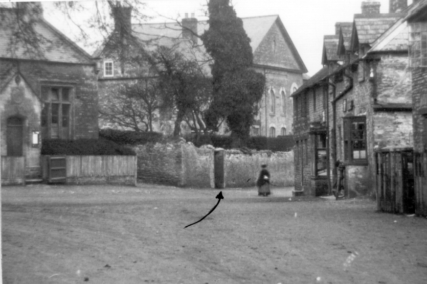 |   | The Square showing Old Pump set in wall of URC |   | |||