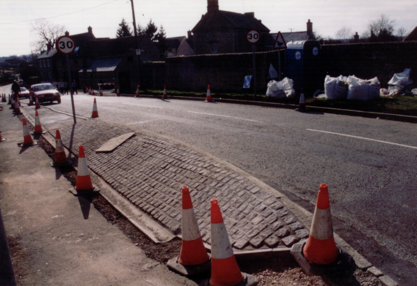 Work on new pavements, and new kerbs in Chase park road : Photo taken outside Old bakery.