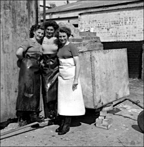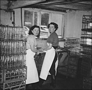 and Hazel Brown washing milk bottles.