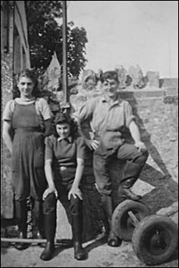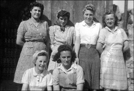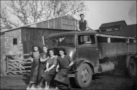 Back row: Eileen Brosnan from Ireland came to the Manor Farm as a land girl. Enid King, Josie Mitchall also land army, Albert Willet, Eunice Bowls another land army girl, Winnie