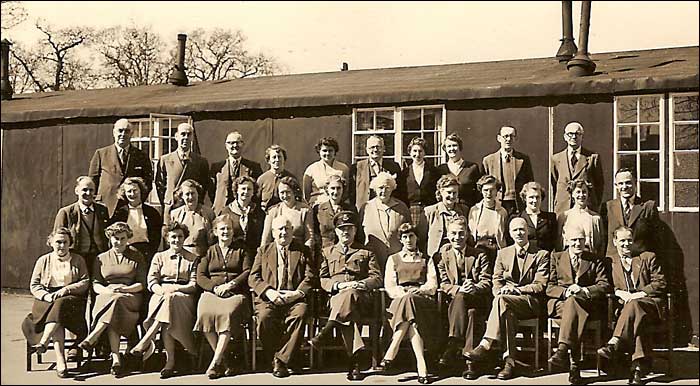 A photograph taken outside one of the huts at Hanslope Park during W.W.II