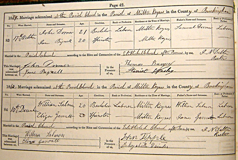 1867. Marriage solemnized at the Parish Church in the Parish of Milton Keynes in the County of Buckingham