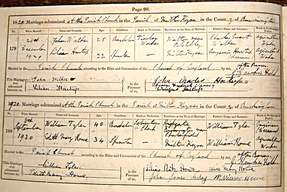 Full address of Groom - Highgate Brimington near Chesterfield.