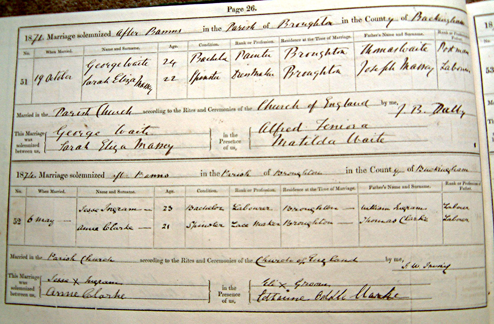 1871. Marriage solemnized at the Parish Church in the Parish of Broughton in the County of Buckingham