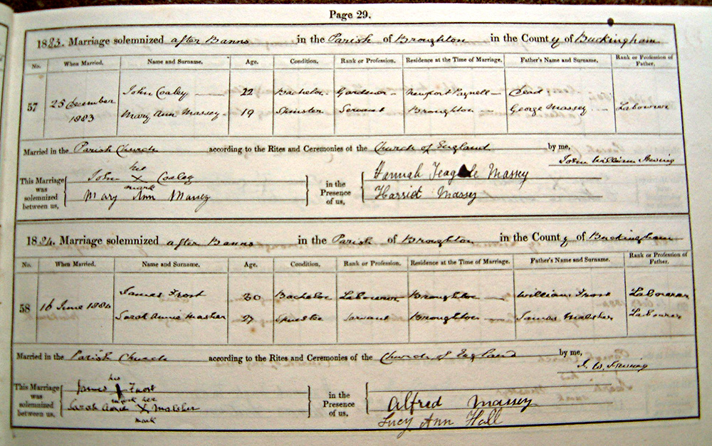 1883. Marriage solemnized at the Parish Church in the Parish of Broughton in the County of Buckingham