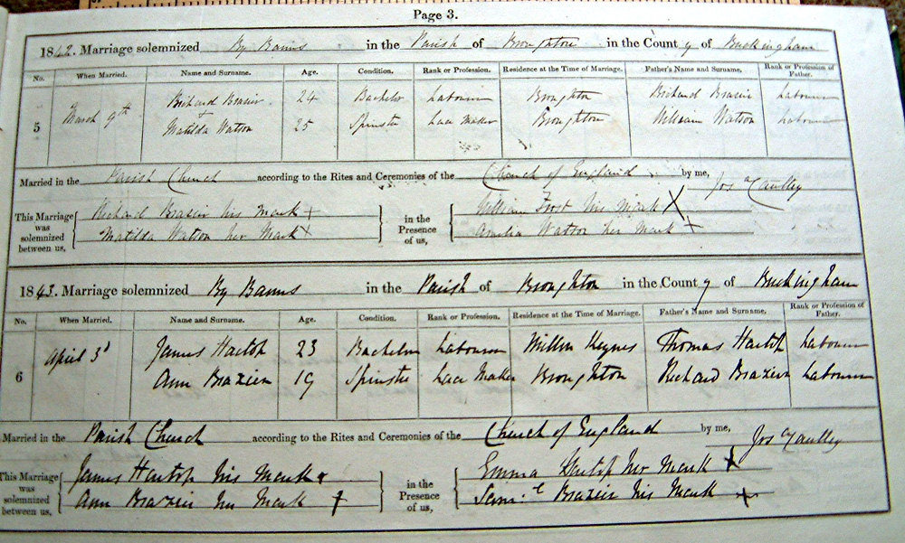 1842. Marriage solemnized at the Parish Church in the Parish of Broughton in the County of Buckingham
