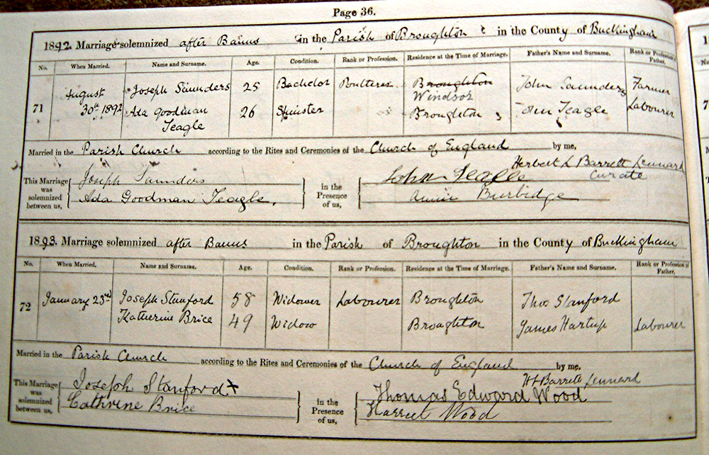 1892. Marriage solemnized at the Parish Church in the Parish of Broughton in the County of Buckingham
