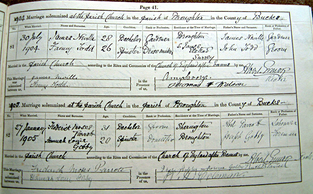 1904. Marriage solemnized at the Parish Church in the Parish of Broughton in the County of Buckingham