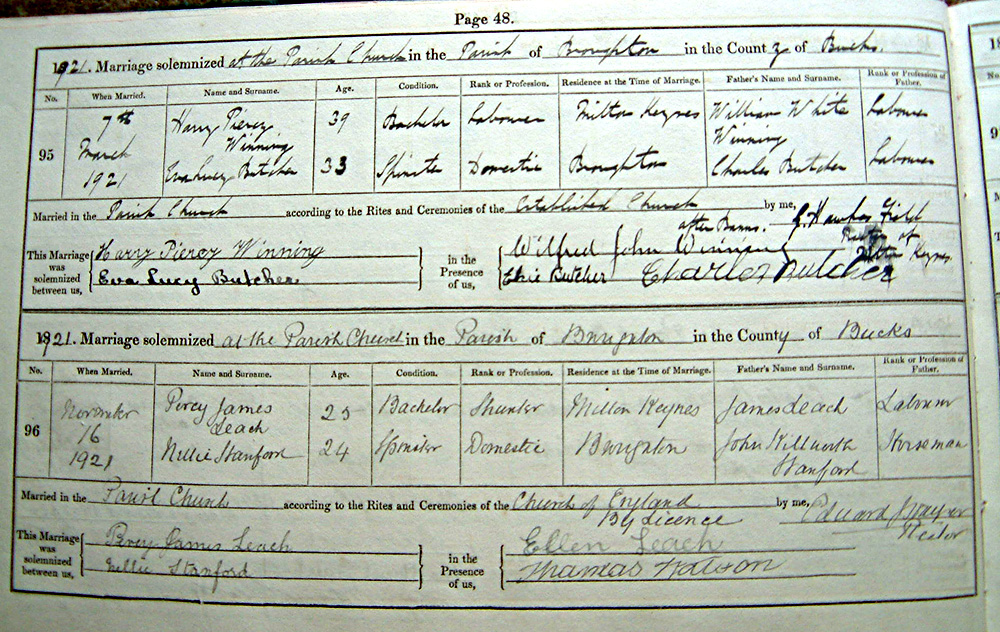 1921. Marriage solemnized at the Parish Church in the Parish of Broughton in the County of Buckingham