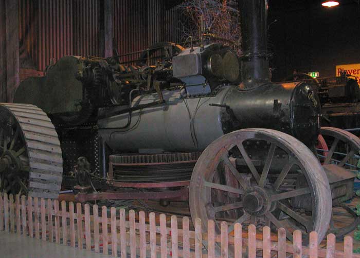 The two ploughing engines would be placed at either side of the field to be ploughed, with the back end of the machine facing the end hedge. The plough would be towed across the field using the winding mechanism that can be seen under the boiler, when it reached the other side the plough would be tipped up to allow the other end to be used to return, cutting furrows alongside the others. It was then necessary to drive both engines along the side of the field far enough to plough alongside the last furrows made. This continued until the whole field was ploughed.