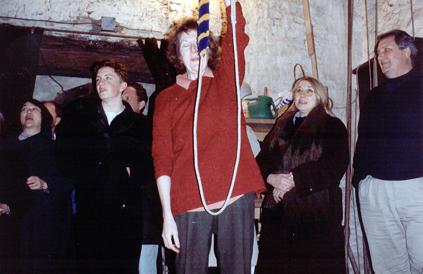 from left Mrs Jagger,Master Shaw, Mrs Shaw, Jane Cave standing by the treble rope waiting to ring, Linda Ryall Vicars Wife, Tom Jagger | |||||