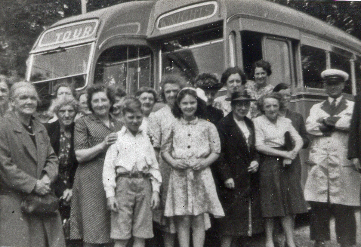 | 4 names missing WI outing to Chedder Gorge 1950s on Bailey's Bus | |||||