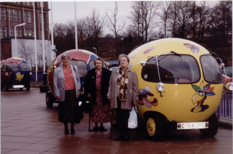Velda Fowler, Olive Fowler, Maisie Underwood. Outside Cadbury World with Cadbury Cars. | |||||