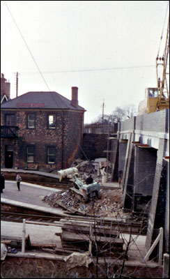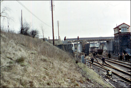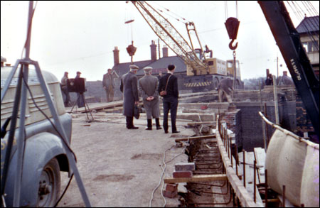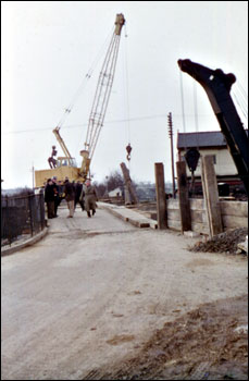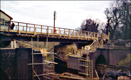 Work being carried out on demolished bridge.