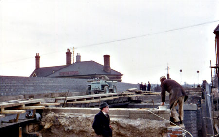 View over the temporary foobridge towards Station Road.
