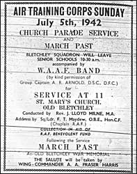 Following the Fall of Singapore, no doubt an increased sense of purpose prevailed on Saturday, February 21st when at the Bletchley Labour Exchange 108 women, born in 1907, registered for National Service. As for the general population, a public meeting, organised by the Ministry of Information, took place in the Studio at 7p.m. on Sunday, March 1st, and with the speaker being Sir Arthur Wellert, K.B.E., Regional Officer for the Ministry, his subject was ‘The Wider War’. In fact this seemed quite appropriate, since it was the day that the Japanese gained the Dutch East Indies, and were therefore now able to contemplate offensives against India and Australia. In fact in view of this menacing potential, Australian adult civilians then became liable for war service on March 2nd. The wider war was also especially relevant as the topic on Monday, March 9th for a Belgian general, the President of the Belgian Chamber in London, who discussing anti invasion techniques, gave an evening talk on the German invasion to Bletchley Civil Defence workers and Home Guard. With the Luftwaffe launching nightly raids on London and the South East, there now came welcome news of the recent graduation in the United States of two Bletchley members of the R.A.F. Specialising in fighter training, they were Jack Biggs, aged 20, the only son of Mr. and Mrs. Fred Biggs, of 24, Duncombe Street, and Luing Cowley, the second son of Mr. and Mrs. Cowley of 20, Bletchley Road. Jack had arrived in Bletchley with his family four years ago, and being employed as an engineering draughtsman at Wellingborough he then joined the R.A.F., in fact as one of the first 50 R.A.F. recruits to be sent to America for flying training under the Lend Lease agreement. However, during the ocean voyage matters were somewhat delayed by a message that the Bismark was on their tail! Following his initial training, in December he then received a diploma for gunnery, and as a member of the Seventh Aviation Cadet Class graduated from the Advanced Flying School, Craig Field, Selma, Alabama, in January, 1942, gaining both his R.A.F. wings and the U.S. equivalent. As for Luing Cowley, for seven years a member of the 1st Bletchley Company Boys Brigade, he had been employed as a mechanic at the Cowley and Wilson garage but joining the R.A.F. in 1940, he had now graduated at the age of 19 from Riddle-McKay Aero College, at Clewiston, Florida. By the entry of the United States into the war, there now ensued a two way exchange of personnel, and to help prepare American serviceman for the British way of life, on arrival each was issued with a booklet that stressed ‘Three actions on your part will slow up friendship - swiping his girl, not appreciating what his army has been up against and rubbing it in that you are better paid than he is.’ ‘The people will be very glad to see you, but their enthusiasm is usually of a rather shy sort.’ As for the British response, a pamphlet issued by the Army Bureau of Current Affairs informed service personnel that ‘Americans are not Englishmen who are different, but foreigners who are rather like us.’ On February 14th Britain had issued the ‘Area Bombing Directive’, whereby residential areas became a target, and of a firm belief in this policy, on February 29th Air Chief Marshall Sir Arthur Harris took over the responsibility from Air Marshall Sir Richard Peirse of Bomber Command, the capability of which would be then much enhanced by the introduction of the four engined Avro Lancaster heavy bomber. By March, Britain’s spending on the war had reached £9,050 million, more than the entire expenditure for the Great War, and as a means to raise extra funds, plans were now well advanced for Bletchley Warship Week, March 21st - 28th. A representative committee had been making preliminary arrangements, and with these now being reported to both a joint meeting and the secretaries of the sub-committees, the objective - especially since losses in the Mediterranean had greatly reduced the availability of escort vessels - was to raise £120,000 to buy a corvette. In fact this was a need that had been recently emphasised by the recent loss of 4/5ths of a convoy sailing to Alexandria from Malta, the inhabitants of which island would in recognition of their defiance against sustained enemy attack, be awarded the George Cross on April 15th. Also regarding service overseas, having enrolled as a sister in the Queen Alexandria Imperial Military Nursing Service, Miss Rose Sundewall, the daughter of Mr. and Mrs. J. Sundewall of Staple Hall Road, would now be posted abroad, and after a period of duty in the Middle East, she would then move with the Eighth Army through Africa, and eventually to Italy. With the ‘Week’ commencing on the Saturday at 2.30p.m. a Grand Parade of Services and Civil Defence Units duly assembled on the Studio car park and amongst those included were an R.A.F. band, two contingents of W.A.A.F.’s, units of the regular army, 456 Squadron A.T.C., elements of the Home Guard, members of the Women’s Land Army, St. Martin’s Church Scouts and Guides, Bucks. police and special constabulary, civil defence units, and local men and equipment of the N.F.S., all lead by a contingent of the W.R.N.S. Also included was not only a lifeboat full of W.R.N.S. personnel, but also a large model submarine, (made at an R.A.F. station!), and a model ‘warship’, H.M.S. Bletchley, which had been built over a lorry with the help of the Council’s Surveyor, Mr. A. Bates and his staff, assisted by an N.F.S. member Mr. L. Verrel, and Police Sergeant Boucher. Proceeding via Lennox Road, Eaton Avenue, Manor Road, Aylesbury Street, Church Street, and Victoria Road, following the salute, (taken at the Council Offices), the parade then passed through the main gates of the school to Leon Rec. for the opening ceremony. This was conducted by Admiral Sir Lionel Halsey, ‘G.C.M.G. etc’ who in fact appeared well qualified for 