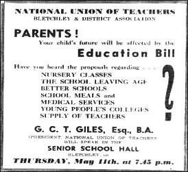 On the morning of Saturday, March 27th the girls in the team of the Bletchley Road Senior School won the honours playing in the girls netball district championship at Stony Stratford and, also as something to sing about, the Bletchley & District Co-op Educational Committee had now decided to start adult and junior choirs. In the Co-op Hall, Albert Street, on Tuesday, 28th March at a meeting at 7.30p.m. it was decided that Mr. J. Willis would be the conductor and choirmaster, with the first practice night to be held in the same venue on Monday, 24th April, at 8p.m. On March 29th, at a 3.15p.m. ceremony at the Bletchley Road Senior School, for the purchase of a parachute a cheque for £36 15s was presented to the R.A.F. whilst, at 3.30p.m. the following afternoon, Leslie Woodgate, the B.B.C. Musical Director of the B.B.C. Education Department, dropped in to audition the school choir, with a view to future broadcasting. He would then make a report to the B.B.C. Education Department. Despite many children now preferring to have their meals at the British Restaurant, the immediate need had arisen for a kitchen maid at the Bletchley School canteen, 9a.m. 3p.m., Monday to Friday, although perhaps school meals regained favour at the end of the month, when the reduced prices for children’s meals at the loss making Restaurant were discontinued. In fact the Ministry of Food had sent a letter to the Highways & Works Committee on the matter, which lead to a recommendation that the price should be the same as for adults. The headmaster, Mr. Cook, recorded ‘I should like to place on record her loyal and devoted service’ when, on securing an appointment in the Junior Department, from April 28th Mrs. E. Jones, nee Hope, finished her teaching duties at the Bletchley Road Senior School. Then, at the end of April, after teaching in Bletchley Schools for 23 years Miss A. Milsom retired, and in the Bletchley Road Junior School she was presented by the combined staffs with a silver bowl, and a handbag and electric kettle by the children. With music by the Acme Players Dance Band, on Saturday, April 29th the Parents Association held a dance in the Senior School, and here there was now an immediate need for a canteen kitchen maid to work from 8.30a.m. to 3p.m., although ‘Very, very occasionally there might be extra work, for which additional remuneration will be paid.’ On the afternoon of June 2nd Mr. Brown, the Assistant Secretary for Education, made a visit to the Bletchley Road Senior School, this being in connection with an impending visit by children from Bledlow Ridge Council School. Accompanied by their headmaster, when they duly arrived on June 5th they were then welcomed to lunch by several members of staff, and were hopefully better behaved than the two Birmingham boys, aged 13 and 12, who, playing truant and travelling to Bletchley, stole Hedley Clarke’s car from the Conservative Club on the evening of June 8th. In evidence, Mr. Clarke, of Osbourne House, Manor Road, said that having left his Austin saloon in the club forecourt at 7.20p.m., he later received a message from the police reporting that the vehicle had been found in the Social Centre car park. Due to the car being driven in low gear, the pistons had been slightly damaged, but, in his defence, the father of the younger boy attributed the escapade to a ‘high spirited mood’ following news of the Normandy landings. Yet it nevertheless seemed hardly a sporting episode, unlike that on the afternoon of June 14th when, with the shield being won by Penn House, the annual sports of the Bletchley Road Senior School took place. On June 16th an afternoon farewell party was given for the Bledlow children, but the jovial mood was in contrast to that which prevailed on June 30th, when the air raid alert sounded at 9.03a.m. The children were marshalled to their allotted places in the corridor, and, with the all clear sounding at 9.12a.m., the Special Technical Exam had to be postponed by 15 minutes. Another alert then occurred on July 10th at 1.10p.m., and on this occasion the all clear sounded 15 minutes later. With the schoolchildren playing all the parts, Bletchley Senior School presented ‘Merrie England’ in the Senior School Hall on July 19, 21, 22, 25, 26, 28 and 29th. Produced by the headmaster, Mr. E.C. Cook, all the parts were played by the schoolchildren, and for his performance as Sir Walter Raleigh, Ray Clargo achieved especial acclaim. Grounds in fact for a quiet pride, and for taking a pride in their grounds, the Junior School now advertised the need for a small lawnmower. Presented with a cheque by the London teachers, in late August Mr. S. Taylor, headmaster of Ecclesbourne Road Senior School, retired at the age of 65. He had been due to retire in 1939, but agreed to continue when the evacuation began. As the career of one teacher so came to an end, that of another now commenced, and at the Bletchley Road Senior School Miss Celia. D. Cook began supply teaching in place of the intended appointment, who would be unable to assume the position until Monday, September 18th. Celia, as well as Geoffrey Cox, of 147, Western Road, had recently gained a B.A. degree at Oxford University, having passed the Final Honours School of Modern History. She was the daughter of the Bletchley Road Senior School headmaster, Mr. E.C. Cook, F.R.S.A., M.R.S.T., and from him regarding the Bletchley Evening Institute details of the classes, and a prospectus, could now be obtained, with the students, (following their enrolment, from 7p.m. - 9p.m. on Tuesday, 19th September, by the principal and staff), to begin their studies on Monday, 25th September. As for the results of the audition for the Senior School choir, on behalf of the Senior Education Assistant on September 28th a letter was received from Viola Huggins, of the B.B.C., Broadcasting House, Whiteladies Road, Bristol, stating that although Mr. Woodgate had been impressed - ‘the choir sang 