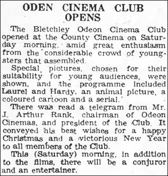 On Monday evening November 23rd under the chairmanship of Mr. E. Callaway a committee, set up to arrange entertainment for Bletchley war workers, was attended by representatives from many local firms, and with Mr. Callaway elected as Chairman, and Mr. F. Jones (Billeting Officer) as Secretary, the possibility of an E.N.S.A. concert was also discussed. A sub-committee would then investigate if a hall could be obtained for use as a social club. At the Senior School hall, in aid of the B.M.S. Medical Mission in China a Variety Concert, arranged by Miss Gertie Weatherhead, took place at 7.30p.m. on Friday, November 27th and included a ladies’ percussion band, instrumental and vocal solos, monologues, and a spectacular finale entitled ‘The Spirit of the British Empire’. On the next day, for the benefit of the P.O.W. Local Forces Christmas Parcels Fund a variety concert arranged and compèred by Lorna Webster was held in the Yeomanry Hall, and the four hours of varied entertainment met with an enthusiastic reception. However, to discuss the formation of a Town Band only a few people had attended a meeting on Wednesday, November 25th and enthusiasm seemed further lacking when, presiding, Mr. F. A. Bates, Chairman of B.U.D.C., said that although the old instruments and uniforms might still be available, there could be no financial help. On this disappointing note the year then drew to a close with, on Monday, December 21st, a private dance in aid of Dr. Barnardo’s held at 8p.m. in the clubroom of the Park Hotel, (a venue popular with many Americans from the air base at Cheddington), and on Sunday, December 27th the Blue Rhythm Dance Band entertaining an audience of service men and women in St. Martin’s Hall. KEEPING AMUSED 1943 With profits destined for the Merchant Navy Comforts Fund, the year began with a revue entitled ‘Confidential Waste’ presented, in 16 short sketches, by the Bletchley Park Dramatic Group. Performed to an appreciative audience, this took place in the Senior School hall, and on the first Saturday of the New Year a fancy dress ball was staged in the Yeomanry Hall. However, only one dancer turned up in fancy dress, to be appropriately awarded first prize! 2nd Lieutenant D. Cook being the adjutant, an Army Cadet Force dance was then held in the Senior Schools on Friday, January 8th. The Melody Makers Band provided the music whilst on January 17th, under the direction of William Pethers at 2.45p.m. the Coventry Hippodrome Orchestra played ‘classics and swing’, at a Grand Orchestral Concert for the benefit of the Bucks. Police Widows’ & Orphans’ Fund. Charles Gee, Bletchley’s very own composer, sang ‘Our Mr. Churchill’, his own composition, , Miss Helene Caine, ‘the famous broadcaster’, performed musical comedy memories, and Ken Astbury, ‘a crooner’, crooned popular tunes. The event was staged at the Studio, and although this would be only a wartime measure, following attempts by B.U.D.C. to arrange the opening of local cinemas on Sundays, the Clerk at a recent meeting of the Council reported that from the Officer Commanding the troops in the Bletchley area, he had now received the required certificate. £7 14s 4d having, through the organisation of a party of carol singers, been raised for the P.O.W. fund by Mr. & Mrs. H. G. Faulkner, they, with Mr. Faulkner as the compère, and ‘Alf’ and his accordion leading the community singing, also arranged a Sunday concert party in St. Martin’s Hall. The event proved pleasingly well attended by members of the Forces and war workers, and also continuing to be well attended were the amenities at Central Gardens although due to the unsightly appearance of waste paper being thrown into the ornamental lake, this was now to be infilled with soil, until a review of the situation could be made after the war. Regarding the Sunday opening of cinemas, following the public notice of the intention to submit a draft order to the Secretary of State, the Council, at a meeting on Tuesday, February 9th, received and considered representations against the proposal by the Baptist Spurgeon church, Freeman Memorial church, and Bletchley United Christian Council. Attending the meeting, the Reverend A. Yates was allowed to put forward the objections, although the motion would proceed nevertheless. With Oliver Wells in the chair, during February the opening of a social club was decided at the Council Offices by a meeting of representatives from Bletchley firms and organisations. The primary object was to provide general entertainment for workers, and one room would be set aside for rest purposes. Having seen the achievement in other districts, Miss Bezzant, Welfare Officer for the Ministry of Information, said that she fully realised the need for something similar in Bletchley, and with a full time warden to be appointed to organise the activities, the club would be open all day and every day for the benefit of shift workers. The Ministry of Labour were prepared to release the Temperance Hall in George Street as a clubroom, and with Mr. H. Jones appointed as Secretary of the Committee, this would operate until the official opening of the centre, when on the formation of a council, a new committee would be elected. In the Social Centre, at a Sunday concert given by Lorna Webster’s party the audience included a large number of soldiers, W.A.A.F.s, and war workers, and amongst the entertainments the inimitable Mr. Charles Gee performed his own compositions. Alfred Duffield sang humorous songs, and the talented Bernard Brown - elected to full country membership of the Magicians Club, London - conjured. Meanwhile, resident at the Lantern, Bletchley Road, Mr. J. Taylor, manager of the Studio, had conjured up the sum of £39 18s 4d for the Merchant Navy Comforts Fund. This had been raised by a collection taken during a showing of ‘In Which We Serve’, and the potential for further amounts was later enhanced by B.U.D.C. whe