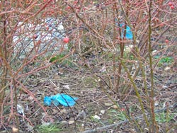 It is said that global warming is causing the seasons to change and we are seeing early blossom on trees and such like. On the short stretch of redway parallel with Carisbrooke Way, which comes out opposite Monmouth Grove a strange new blossom has appeared on some of the shrubs, It is in the form of blue plastic bags containing what might be politely referred to as K9 Poo. There are six such bags along distance of no more than 10 yards (sorry metres), with more if you follow the trail.
