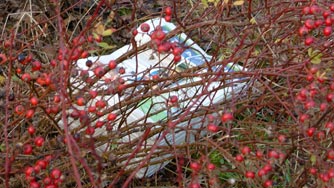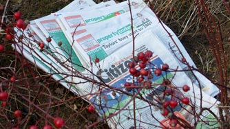 Whilst following the trail of 'doggy doos' One couldn't help noticing the bundles of 'Citizen' newspapers, still with their binding, also thrown into the shrubbery. Presumably someone's little darling is being paid to deliver these, please check it's not yours!