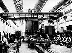 | During the 1914-18 war the Works altered carriages to be used as ambulance trains for home and abroad. Their war work also included working for the Ministry of Munitions. During and between the wars all sorts of things were made at the Works and once again the 1939-45 conflict meant that ambulance trains were in demand together with armoured vehicles, mobile kitchens, wings for the Horsa gliders, assault boats and, unusually, Whitley bombers were sent for repair. | ![]() |