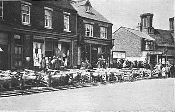 Around 1914. Cattle market outside Gilbys & Moss’s shops.