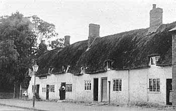 Old thatched cottages looking north. Large building on left is Spurgon Memorial Baptist Chapel built in 1892.