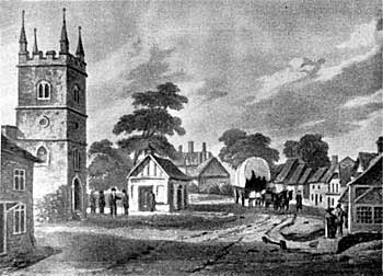 John Hassells sketch of Fenny Stratford 1819. Etched during a trip down the canal by the artist.