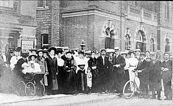 People in front of Baptist Church.