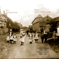 C. 1895 ‘Drinking outside the Shoulder of Mutton, Calverton, are two regulars with the publican Harry Holman and his family. He also ran a butchery business: notice the cart on the right hand side of the photo. Left to right: Harry Holman, Lucy Ethel, Fred, Charlie, Mary Mrs Ellen Holman, Bill and May’.