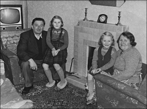 Sid, Janet, Sue and Ada Eglesfield in the Barley Mow living room c 1956