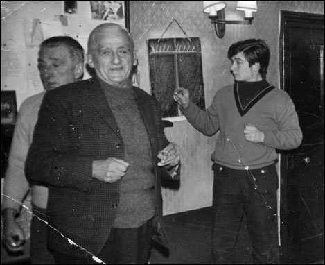 Sid, Cecil "Chirp" Eglesfield and Roger Kightley in the Barley Mow bar