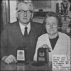WHEN Sidney Eglesfield was a boy, beer was 3d a pint. He remembers it well - he was born in a pub. Sidney is 67 now and the price of beer has gone up a bit. He still drinks it of course but he gave up living in a pub on Monday. Sidney has retired as licensee of the Barley Mow pub in Cosgrove and gone to live at 31 Manor Close. He is picture above with his wife Ada at the pumps of the Barley Mow. He was born in The Barge at Cosgrove where his father was licensee and ran the pub for 10 years until it closed in 1955.