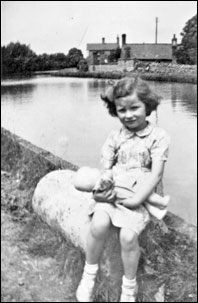 Wendy Jones seated at the bottom of the garden, was born at the Barley Mow