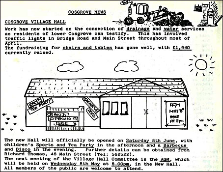 The people of Cosgrove began to identify the need for a community hall when increasing leisure time led to groups and clubs meeting informally in the Old School building on the Green.