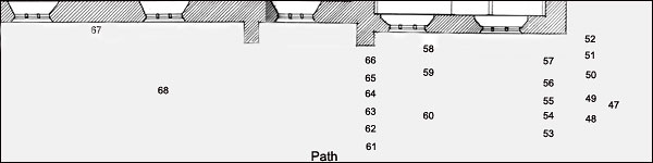 Plan of graves next to to Church. The recorded numbers follow on from the North side of the Church.