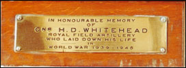 IN HONOURABLE MEMORY OF GNR. H.D. WHITEHEAD ROYAL FIELD ARTILLERY WHO LAID DOWN HIS LIFE IN WORLD WAR 1939-1945