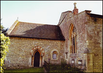The nave is off-centre from the chancel and on a slightly different axis. The mid 13th-century north arcade is of five bays, on slender quatrefoil piers with moulded capitals, and has a hood-moulding with sawtooth ornament. The north doorway of the aisle matches the arcade, but must be re-set if, as seems likely, the aisle was widened in the late Middle Ages. The clerestory of quatrefoil windows above the arcade is probably 14th-century. The west tower, aligned on the nave, with a tall arch containing a mixture of late Curvilinear and Perpendicular tracery, is evidently late 14thcentury. The south wall of the nave and its windows are now entirely Victorian, though the parapet bears a datestone of 1586; windows with Y-tracery and a substantial south porch are recorded. (fn. 86) The 15th- or 16th-century nave roof is of rather rough braced king-post construction, with remains of painted chevrons on its easternmost bay. Re-set in the nave windows are three shields of armorial glass.