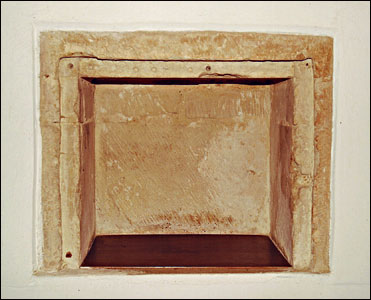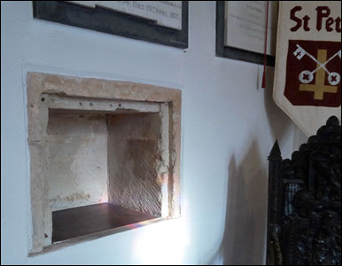 The aumbry (a secure chest or cupboard in which altar plate and other sacred items or relics are stored)