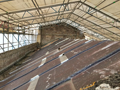 When the builders, CEL, took the outer covering of the roof off, they found that some of the beams were supported by rocks and pieces of scrap masonry.